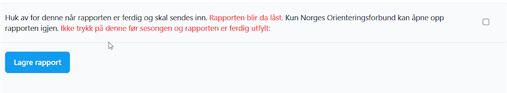 Tilslutt: Når klubben har lagt inn tallene må det hukas av i lille ruten til høyre og LAGRE.